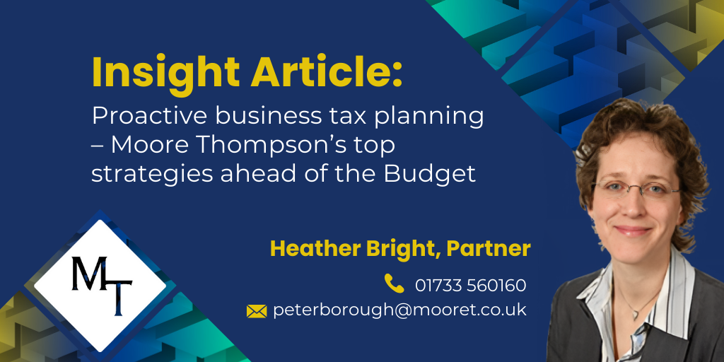“Proactive tax planning is about future-proofing your business,” comments Heather Bright, Tax Partner at Moore Thompson. “Every time the tax rules change, there is a chance to adapt, rather than getting caught off guard. With the Budget coming up, now is the perfect time to put planning into action.”